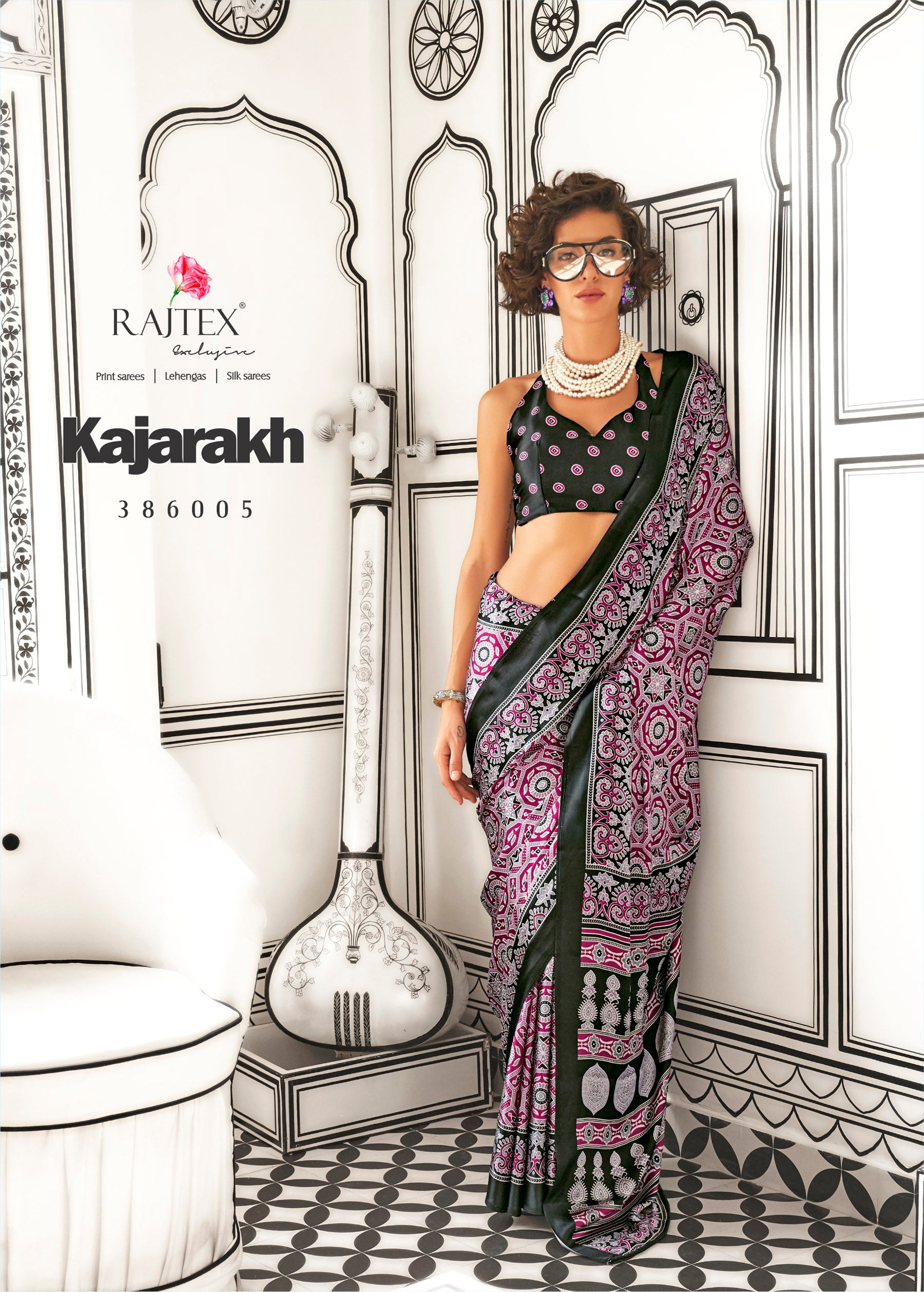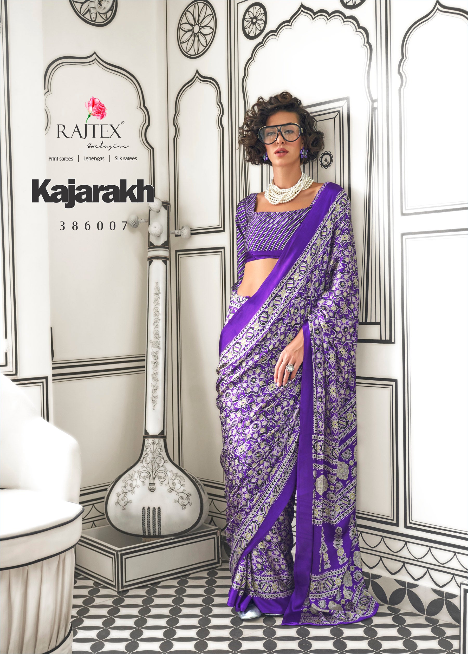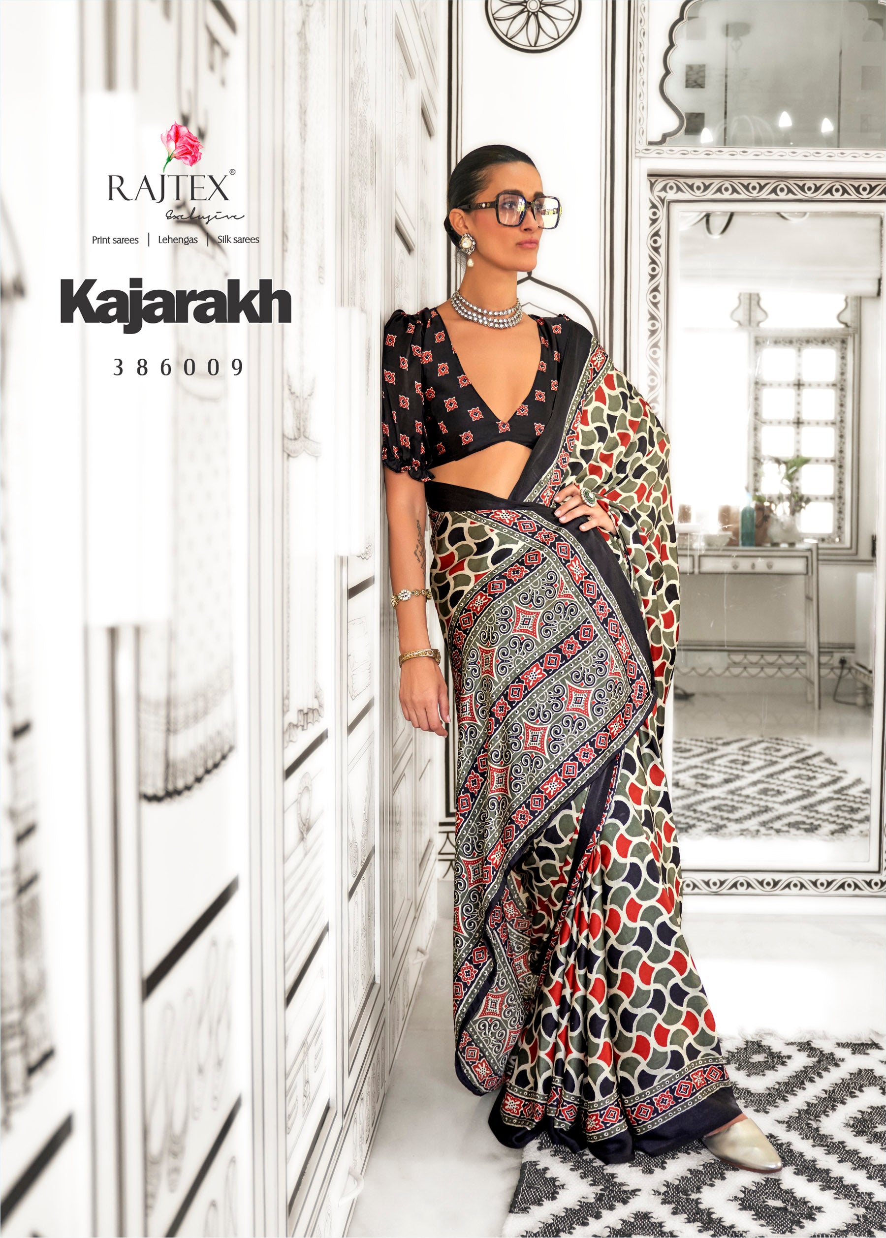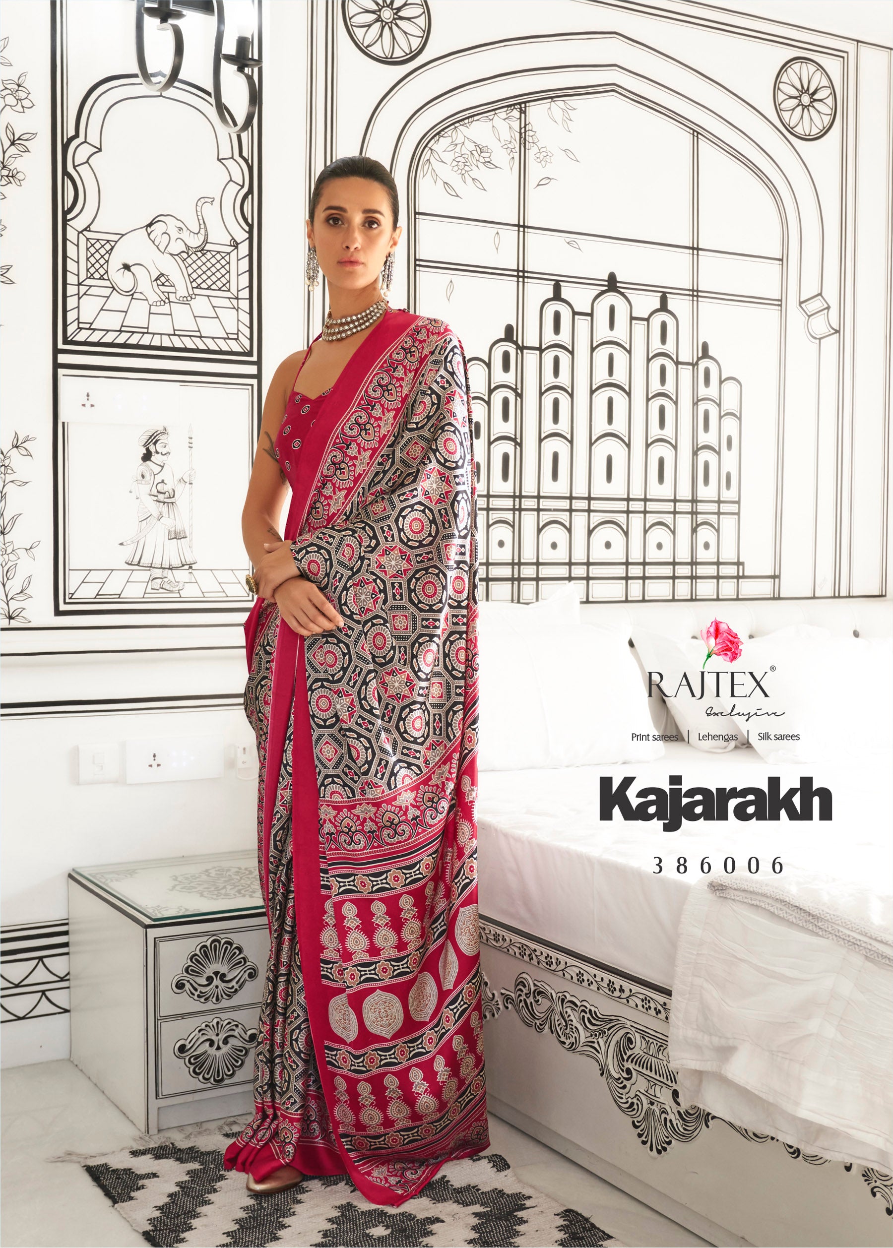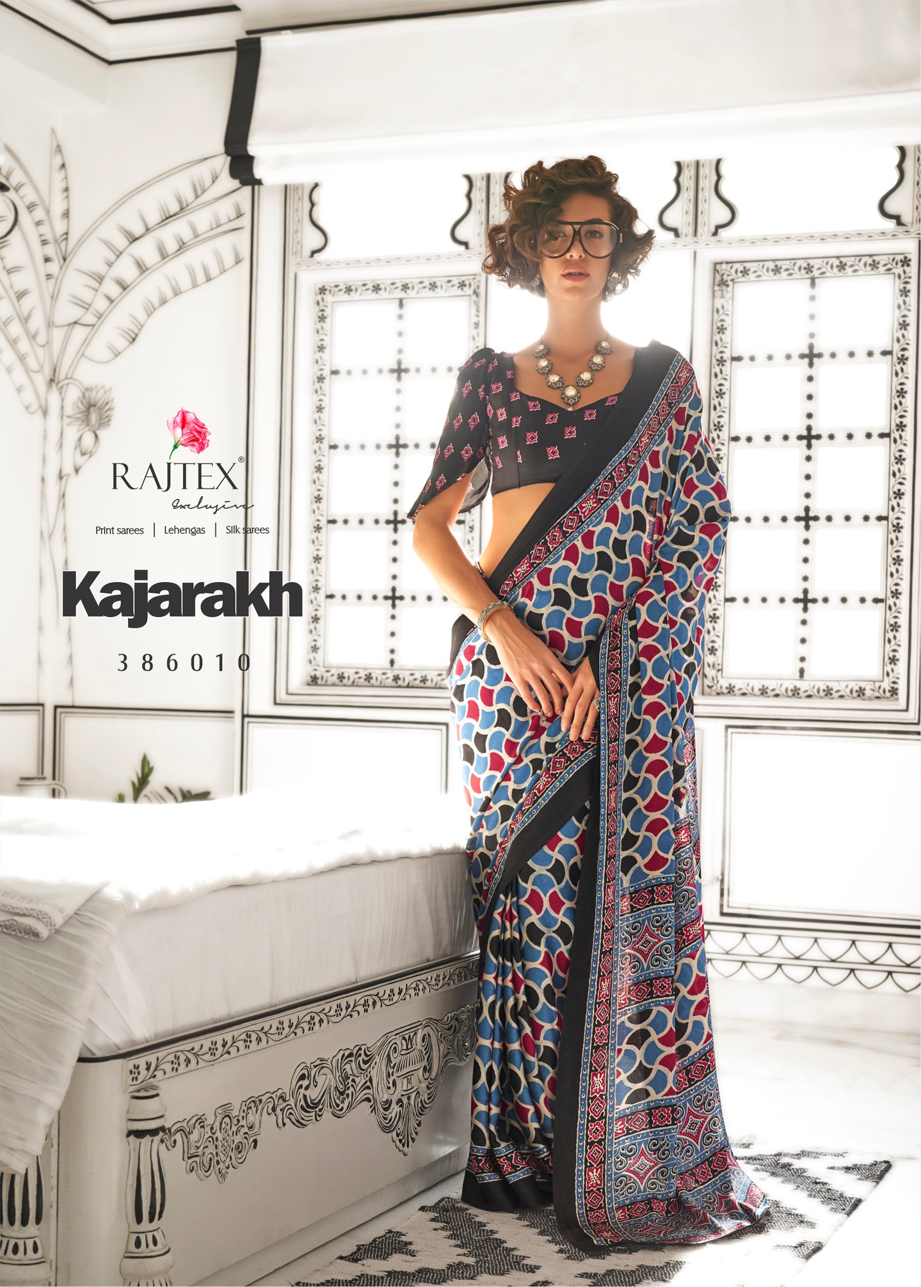 | Fabric | Printed Ajrakh Satin Crepe Sarees |