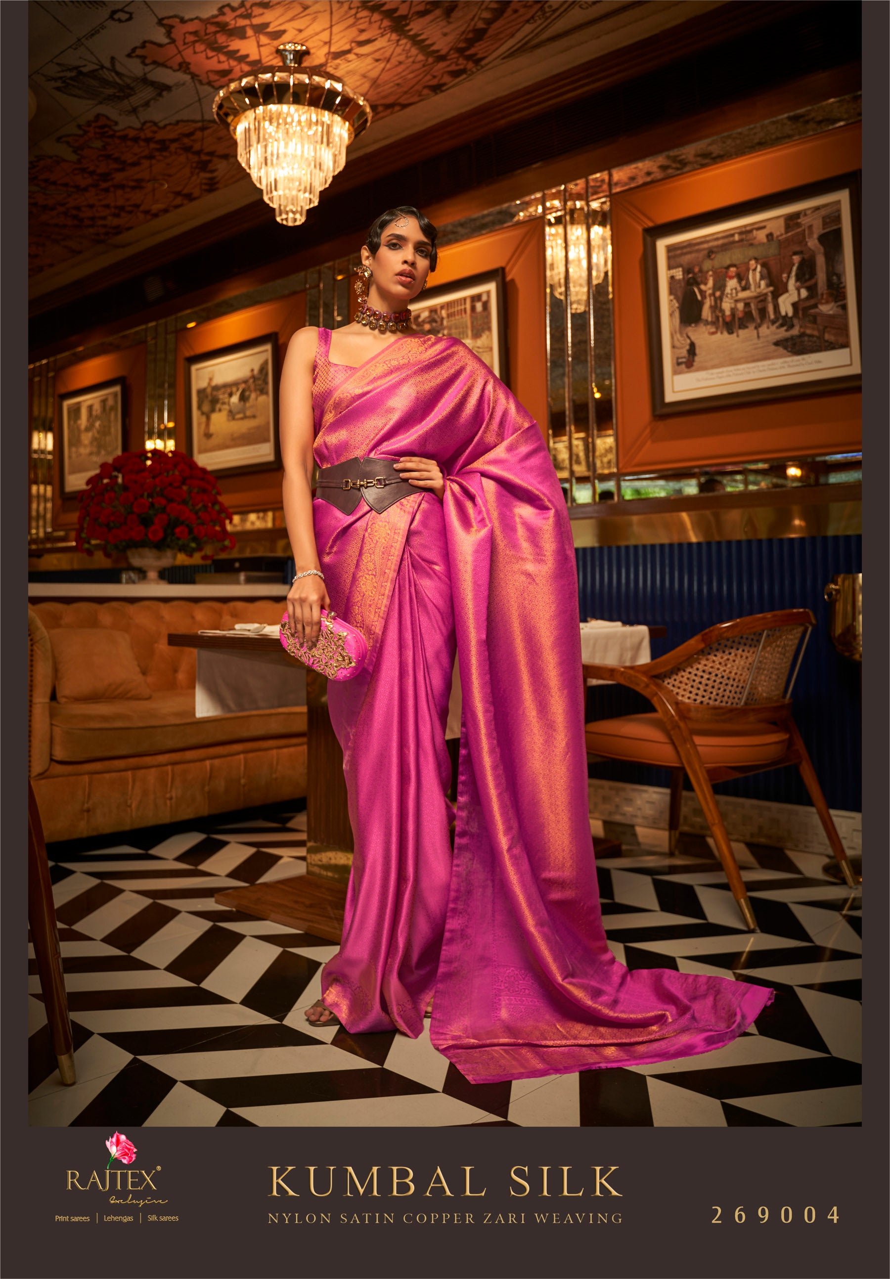 Elevate your ethnic style with our exquisite Nylon Satin Copper Zari Weaving Sarees. Crafted with a luxurious nylon satin base, these sarees offer a rich, lustrous finish that gracefully drapes the body. The highlight is the intricate copper zari weaving, adding a touch of regal shimmer and timeless elegance. Perfect for festive occasions, weddings, or special gatherings, each saree is a blend of modern charm and traditional artistry. Lightweight yet opulent, they ensure comfort without compromising on style. Make a statement wherever you go with these radiant sarees that celebrate the beauty of fine craftsmanship and sophisticated design.