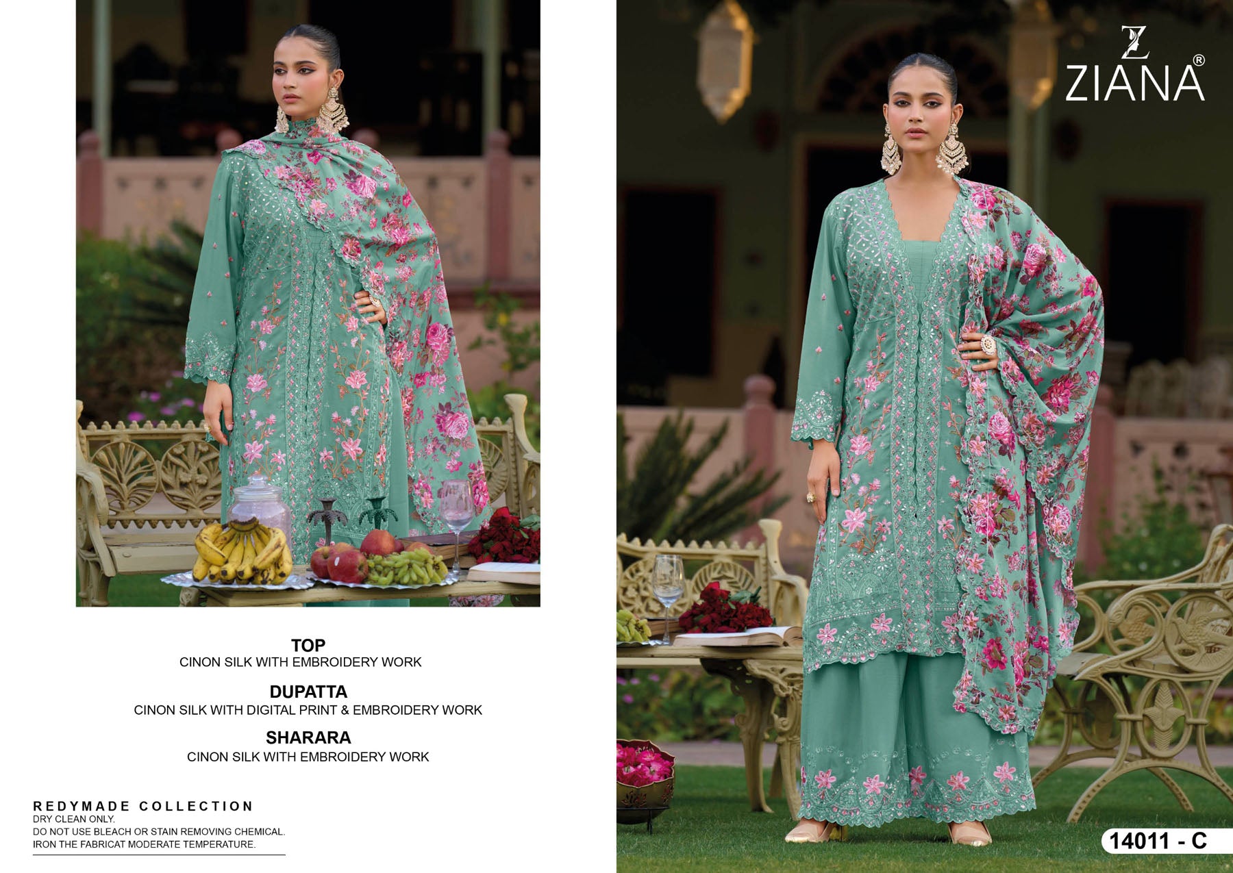 This elegant three-piece set is crafted from premium Chinon Silk, designed to bring sophistication and charm to your wardrobe. The top is beautifully adorned with intricate embroidery work, showcasing fine craftsmanship and timeless appeal. The dupatta, also made from Chinon Silk, carries matching embroidery that enhances the overall grace of the attire. Completing the ensemble, the bottom features delicate embroidery work that perfectly complements the top and dupatta. The soft texture of Chinon Silk combined with its graceful fall makes this outfit ideal for festive occasions, parties, or traditional gatherings, ensuring you stand out with effortless elegance and refined style.