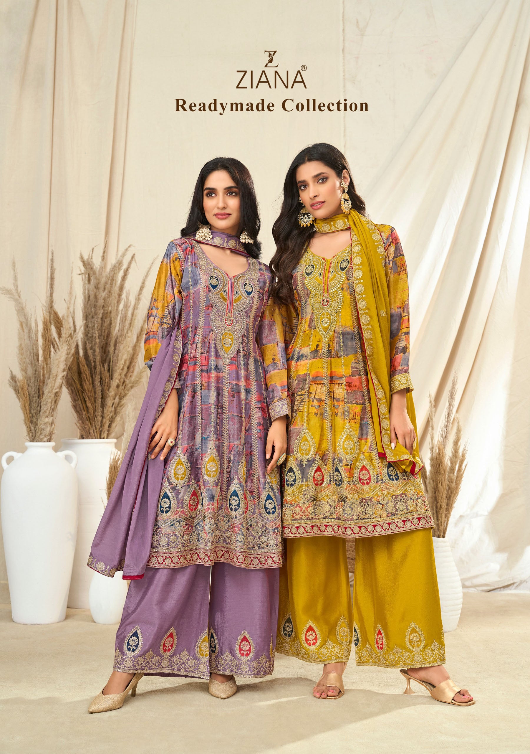 Elevate your ethnic charm with this exquisite 3-piece set crafted in luxurious Chinon Silk. The top features a stunning digital print adorned with intricate embroidery and delicate handwork, blending tradition with modern artistry. Designed to add grace and sophistication, it pairs beautifully with a Chinon Silk bottom enhanced with fine embroidery, ensuring comfort without compromising on elegance. The ensemble is completed with a Chinon Silk dupatta showcasing elegant embroidery work, making it perfect for festive occasions, weddings, or special gatherings. This timeless creation reflects elegance, refinement, and classāan ideal choice for women who love to embrace ethnic wear with a touch of modernity.